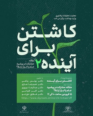 اولین و دومین نشست “کاشتن برای آینده” با موضوع پژوهش کاربردی با حضور دکتر شقایق حقجوی جوانمرد رئیس مرکز توسعه، هماهنگی و ارزیابی تحقیقات معاونت تحقیقات و فناوری وزرات بهداشت، دکتر آرش رشیدیان استاد سیاستگذاری سلامت در دانشگاه علوم پزشکی تهران و مدیر کل دفتر پژوهشهای دفتر منطقهای EMRO، دکتر افشین زرقی معاون تحقیقات و فناوری دانشگاه علوم پزشکی شهید بهشتی، دکتر اکبر فتوحی به عنوان معاون تحقیقات و فناوری دانشگاه علوم پزشکی تهران، دکتر استوار مدیر کل دفتر مدیریت بیماریهای غیرواگیر وزارت بهداشت از طریق محیط اسکای روم Skyroom برگزار شد.